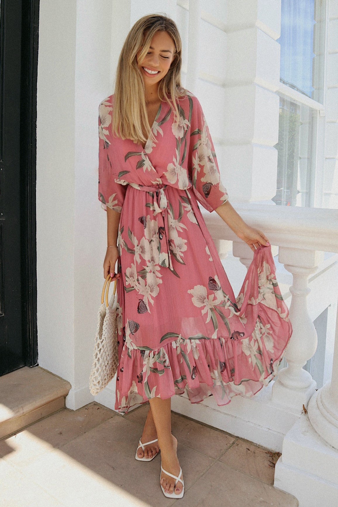 This floral dress will take you to the beach or will simply be a great partner for a casual stroll on a hot summer day.